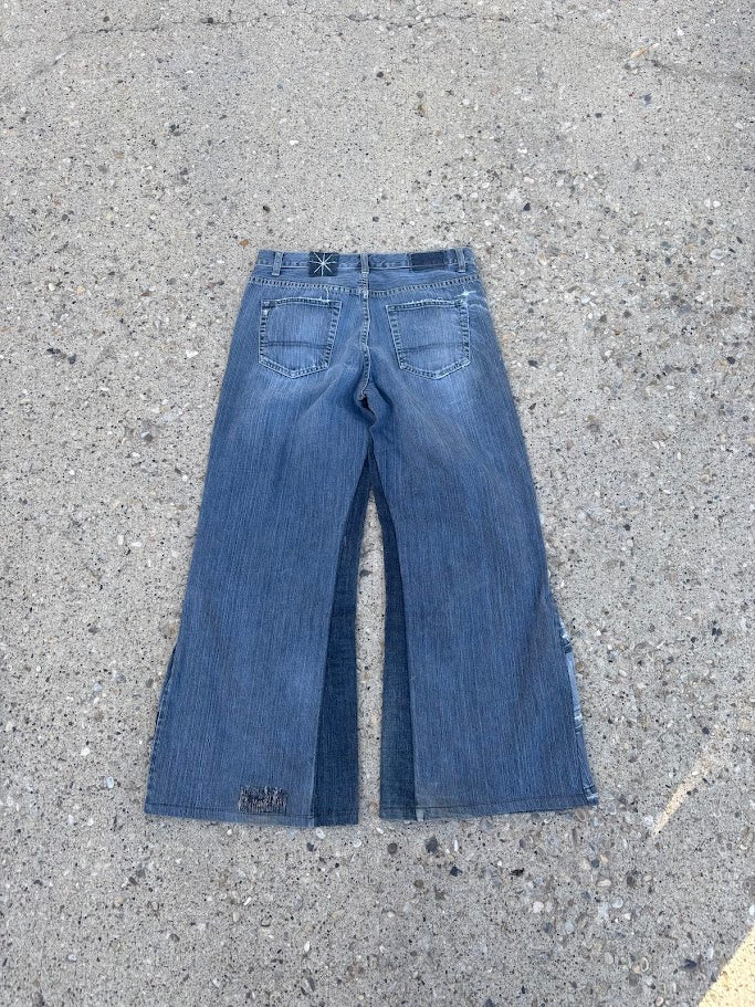 - 34" Waist, 41" Length, 11.5" Rise, 13.5" Leg Opening